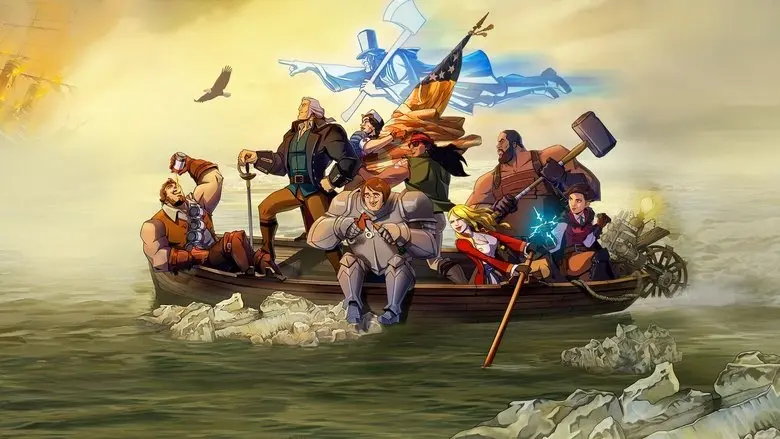 Com uma motosserra, George Washington se une ao beberrão Sam Adams para derrotar os ingleses numa grande zoeira com a Revolução Americana.